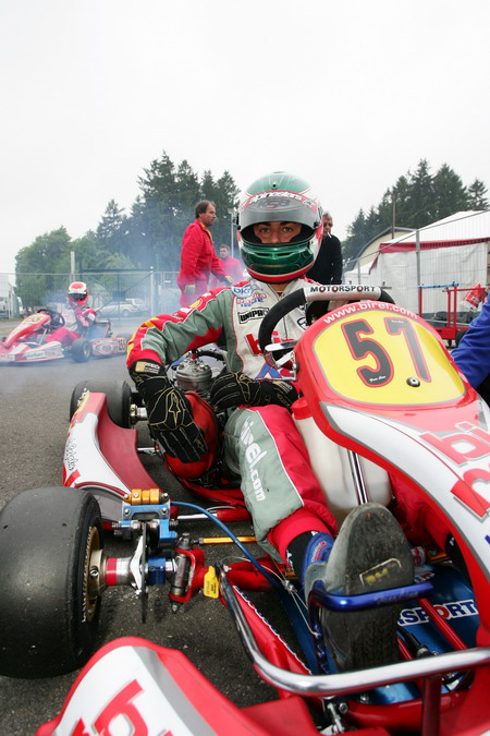 Luigi Cefalu ist mit einer finsteren Miene vom Hunsrückring in Hahn abgereist. Beim dritten Rennen zur ADAC Kart Masters lief es für den Wangener das ganze Wochenende nicht richtig rund. Der im Gesamtklassement auf Rang Fünf liegende Birel-Pilot hatte sich auch auf dem 1.257 Meter langen Kurs einiges vorgenommen. Doch schon im freien Training lief es mit den Rängen acht und sieben nicht ganz nach Wunsch. Luigi, wäre aber nicht Luigi, wenn der angriffslustige Pilot optimistisch ins Zeittraining gehen würde. Hier gab es den nächsten kleinen Dämpfer. "Platz acht ist enttäuschend, ich dachte ich bin auf jeden Fall unter den ersten Drei. Vorne hatte ich aber auch zu viel rutschen, da werden wir etwas am Chassis verändern. Dann sollte es im Rennen besser gehen." Der Auftakt am Sonntag fiel sprichwörtlich ins Wasser. Zwar hielten die Schleusen am Himmel und es blieb trocken, doch eine kaputte Membran verhinderte die Teilnahme am Warm-Up. Ungeachtet der Probleme startete Luigi mit großen Erwartungen ins Rennen und hatte gleich zu Beginn eine Menge Pech. "Mir ist gleich in der ersten Kurve einer von hinten ins Heck gefahren und ich habe mich gedreht. Von ganz hinten habe ich noch einmal alles versucht", resümierte er im Ziel. Dank einer sehr guten Chassiseinstellung raste Luigi von Rang 22 nach vorn, mehr als der 16. Platz war aber aufgrund des immensen Rückstandes nicht mehr drin. Trotz der "Nullrunde" ging der Blick bereits nach vorn: "Im Finale müssen wir schauen, aber von dem Startplatz wird es schwer." Im Grid reihte sich Luigi für das zweite Rennen auf Rang 32 ein. Wieder kam er am Start gut weg und wich bei einem erneuten Crash am Ende der Start-Ziel-Geraden gerade noch aus. Schon nach einer Runde lag Luigi auf Rang 25 und jagte sein Birel-Kart weiter wie ein Teufel um den welligen Kurs. Bei Halbzeit fuhr er als 15. zum ersten Mal in den Punkten und es sollte noch besser kommen. Er profitierte von einem weiteren Unfall im Mittelfeld und fuhr als Zehnter über den Zielstrich. "Am Ende ist der zehnte Platz das Beste, was ich rausholen konnte, aber insgesamt bin ich unzufrieden. Im Zeittraining und im ersten Rennen hatten wir Probleme, die wir erst zum Schluss in den Griff bekommen haben", zeigte sich Luigi gewohnt kritisch. "Jetzt geht es nach Wackersdorf… In der DKM bin ich Fünfter in der Gesamtwertung und da will ich wieder vorne dabei sein." Am 24./25. Mai ist es soweit, dann steigt der Große Preis von Wackersdorf.